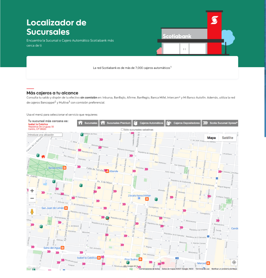 Ubicador de sucursales y cajeros automáticos Scotiabank.